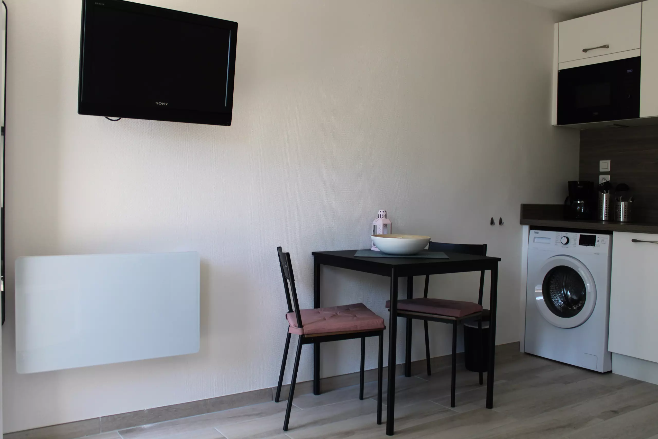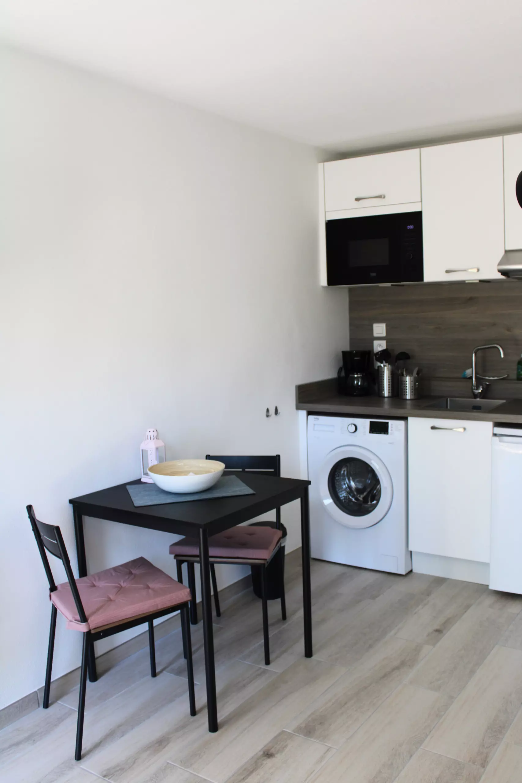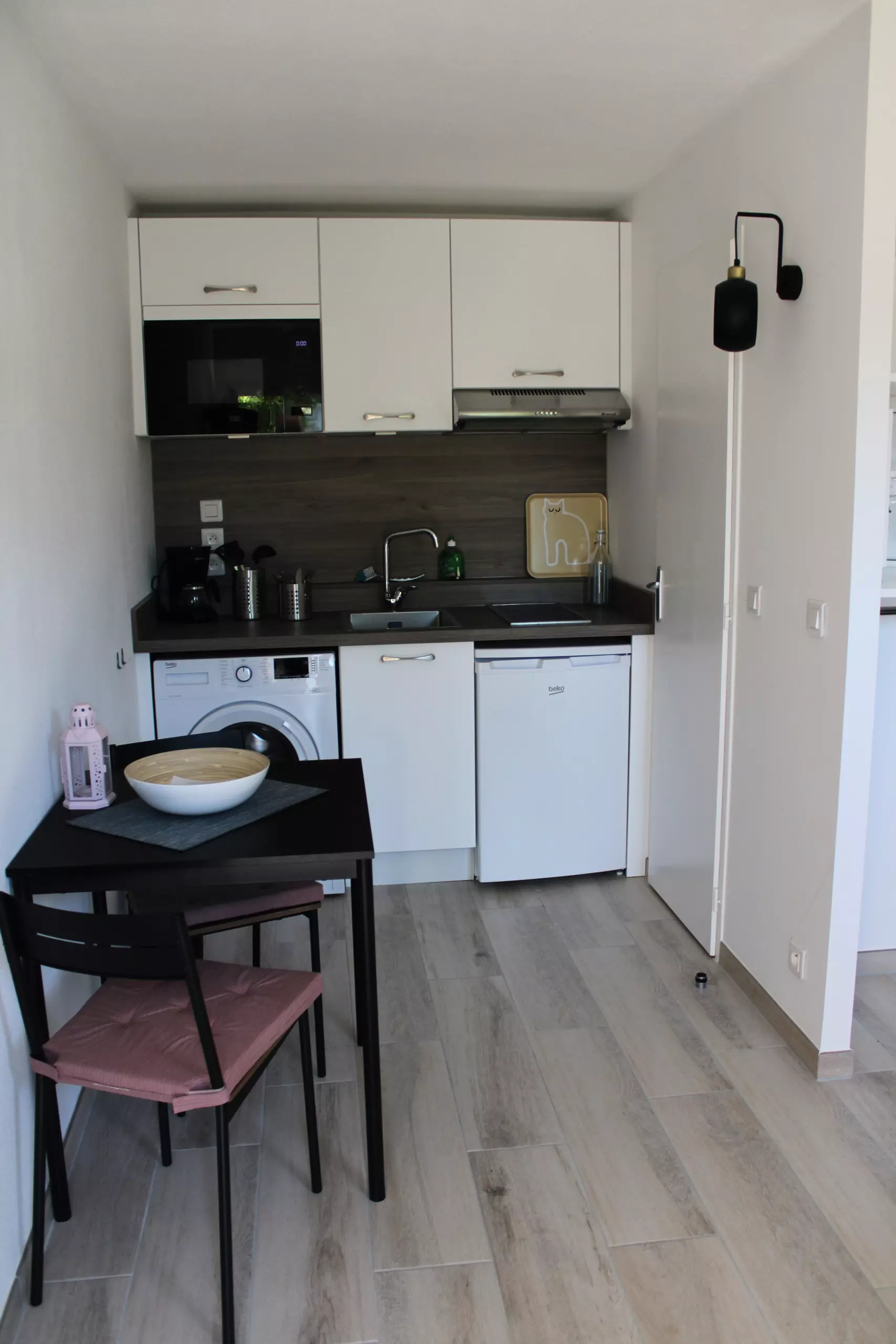 La cuisine est toute équipée (plaques induction, grille pain, ustensiles...) afin de pouvoir cuisiner en toute autonomie. Un lave linge est également à votre disposition. Le wifi est disponible gratuitement