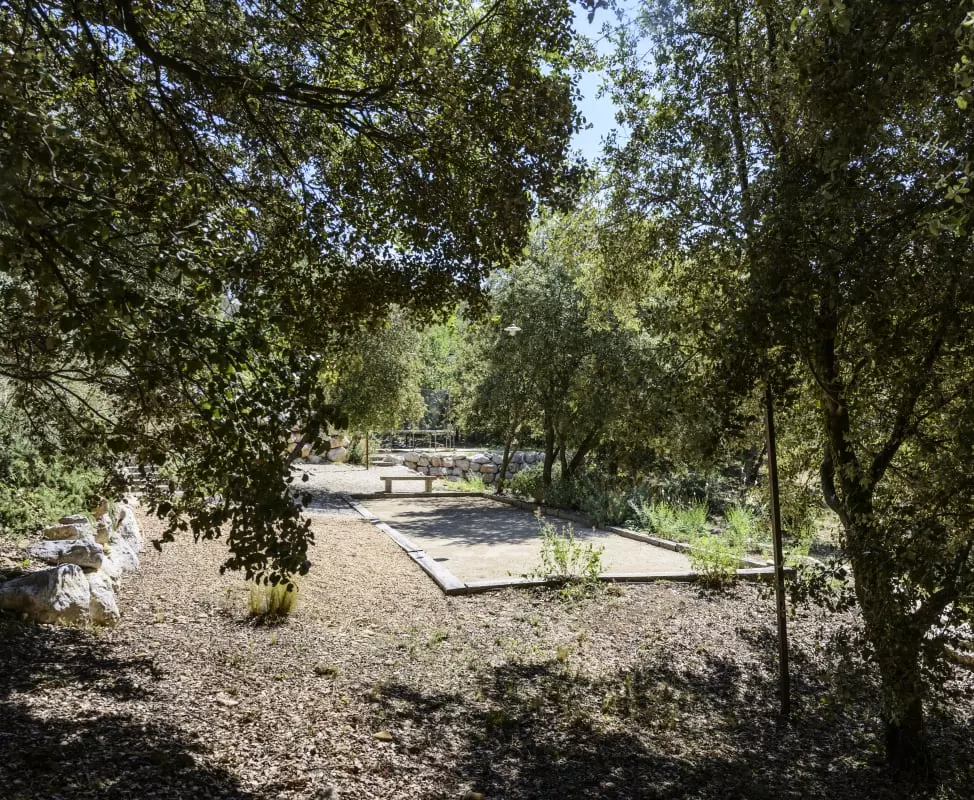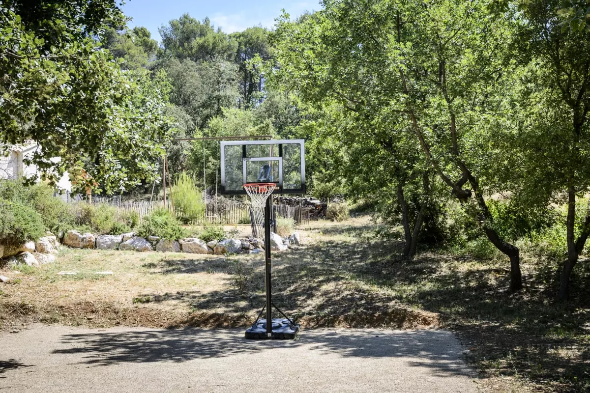 Activités sportives : ping-pong, terrain de pétanque, panier de basket