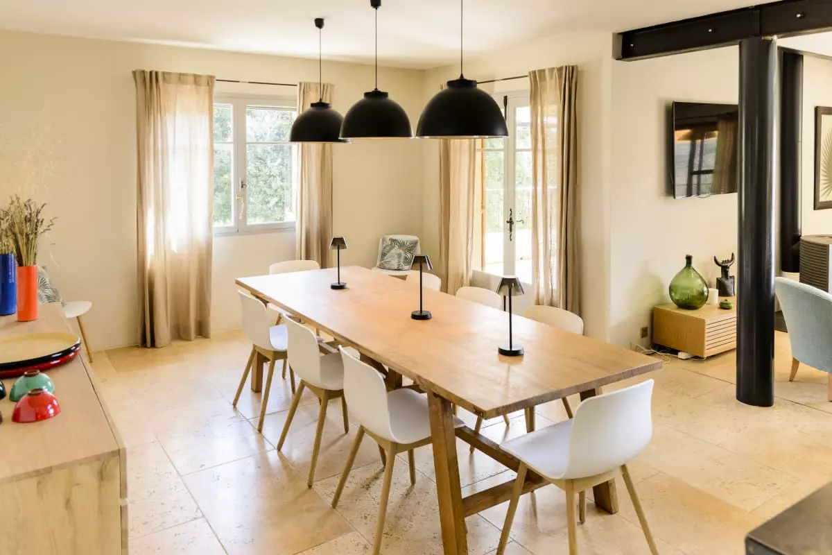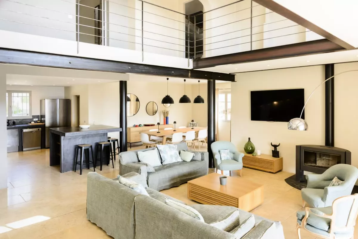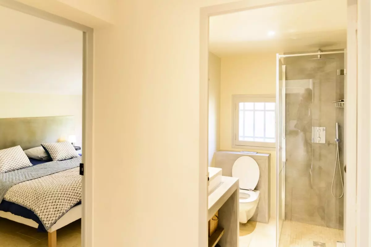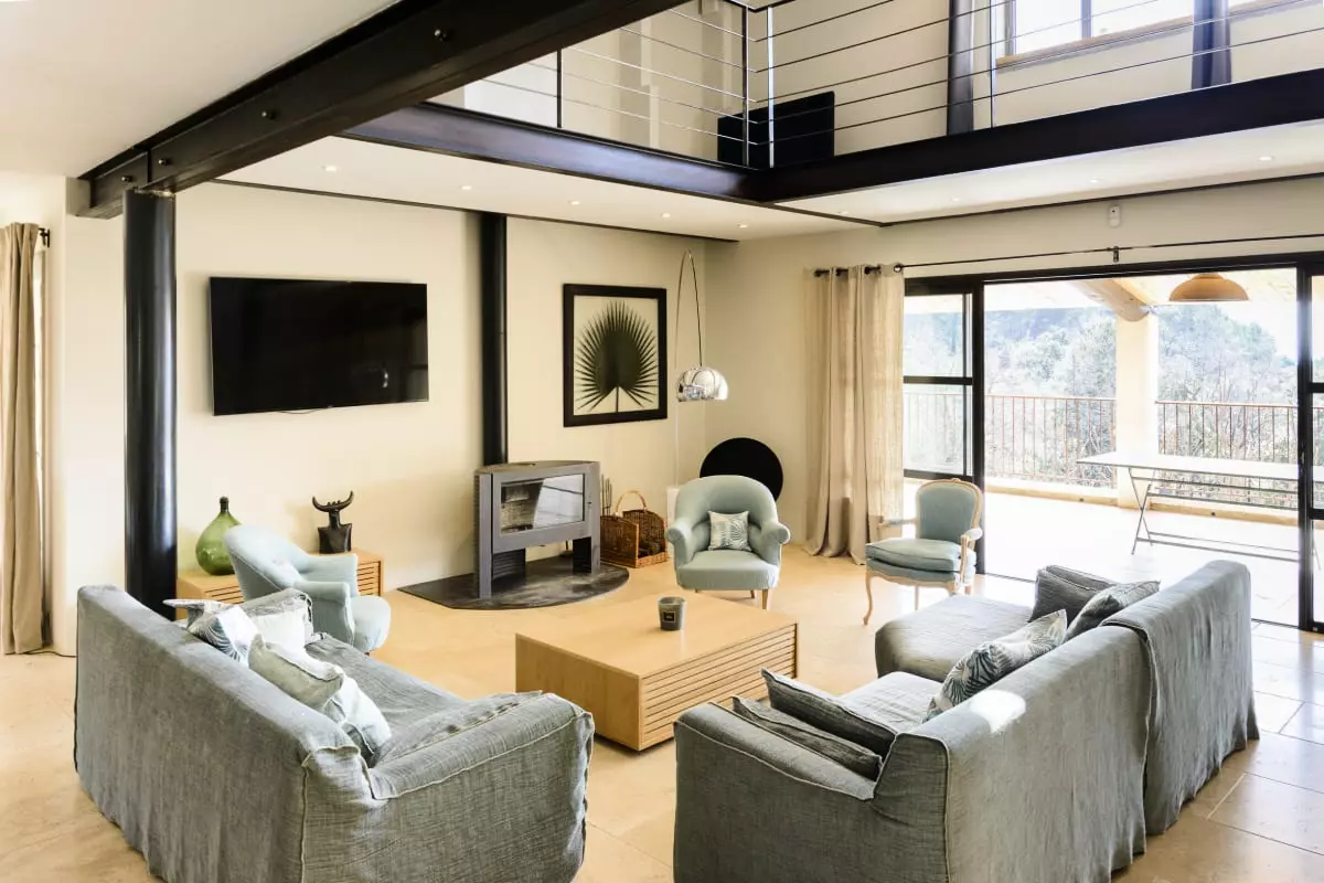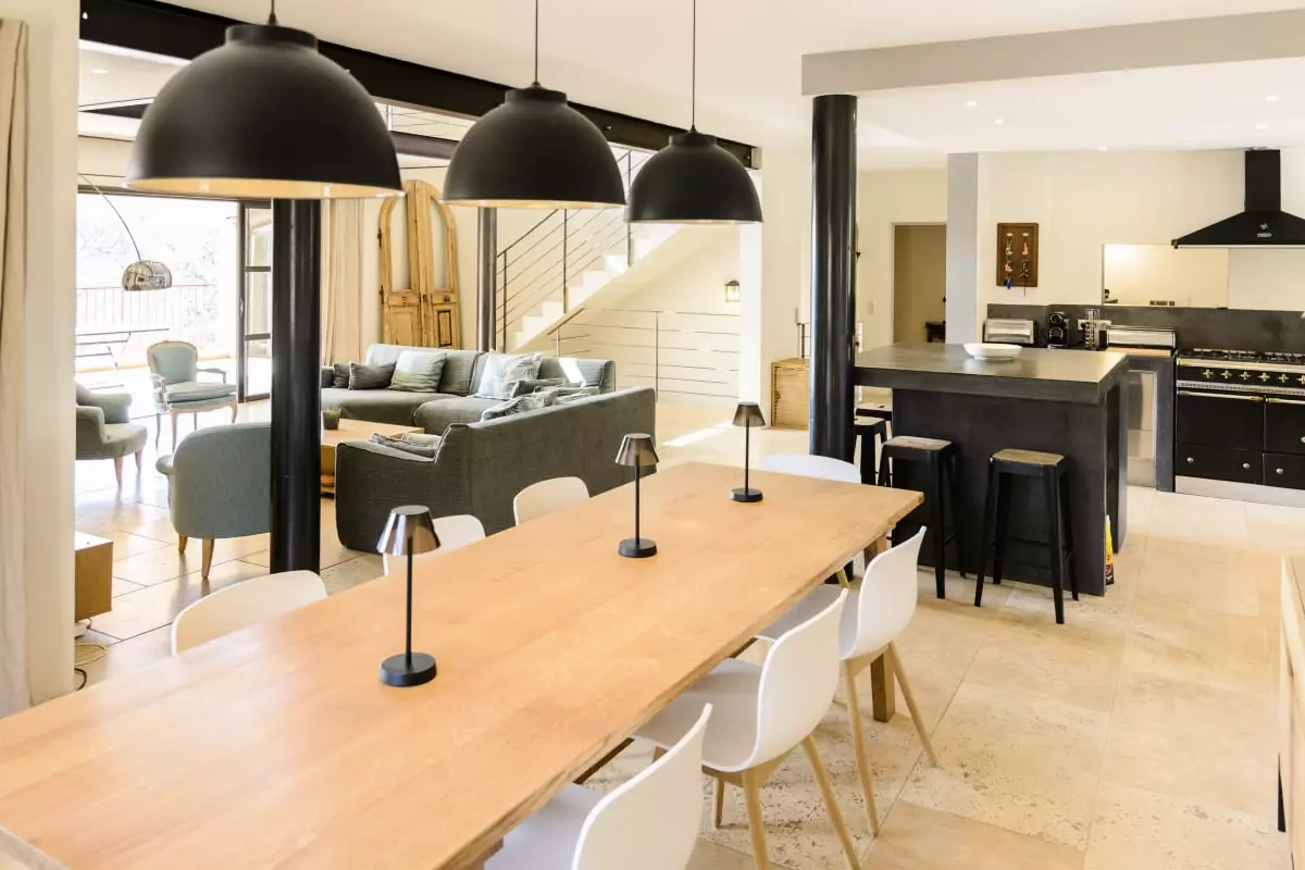 Avec ses 290 m² d’espaces élégants et lumineux, Les Gardis propose 7 chambres climatisées (dont une naturellement fraîche au rez-de-jardin), 7 salles de bain modernes et une vaste pièce à vivre au design contemporain, alliant salon, salle à manger et cuisine ouverte. La hauteur sous plafond et les matériaux de qualité créent une atmosphère à la fois chaleureuse et sophistiquée.