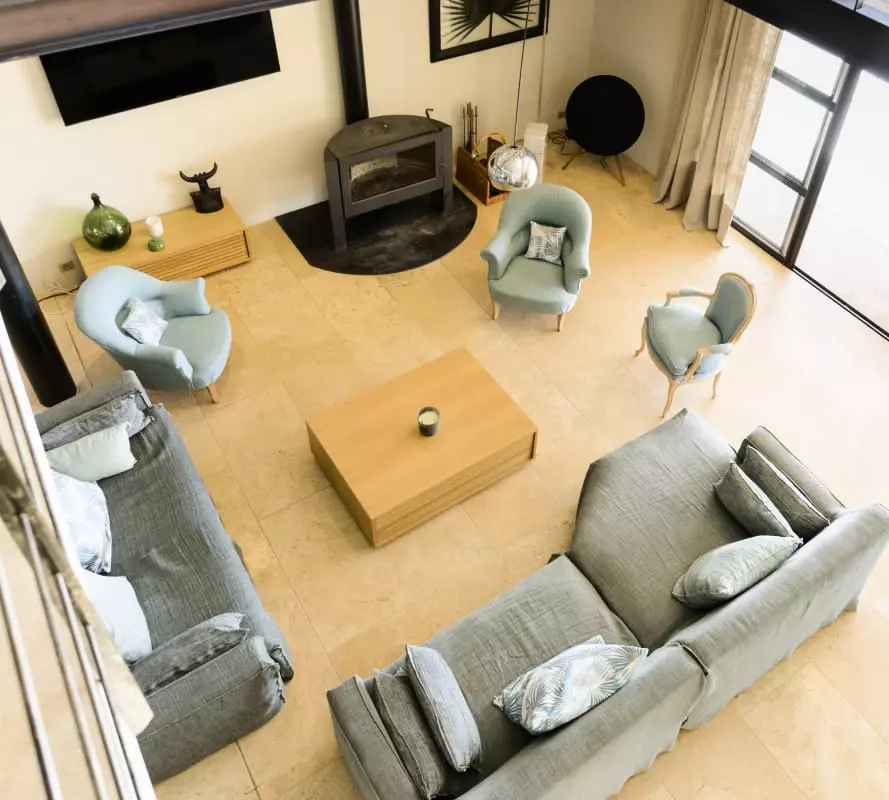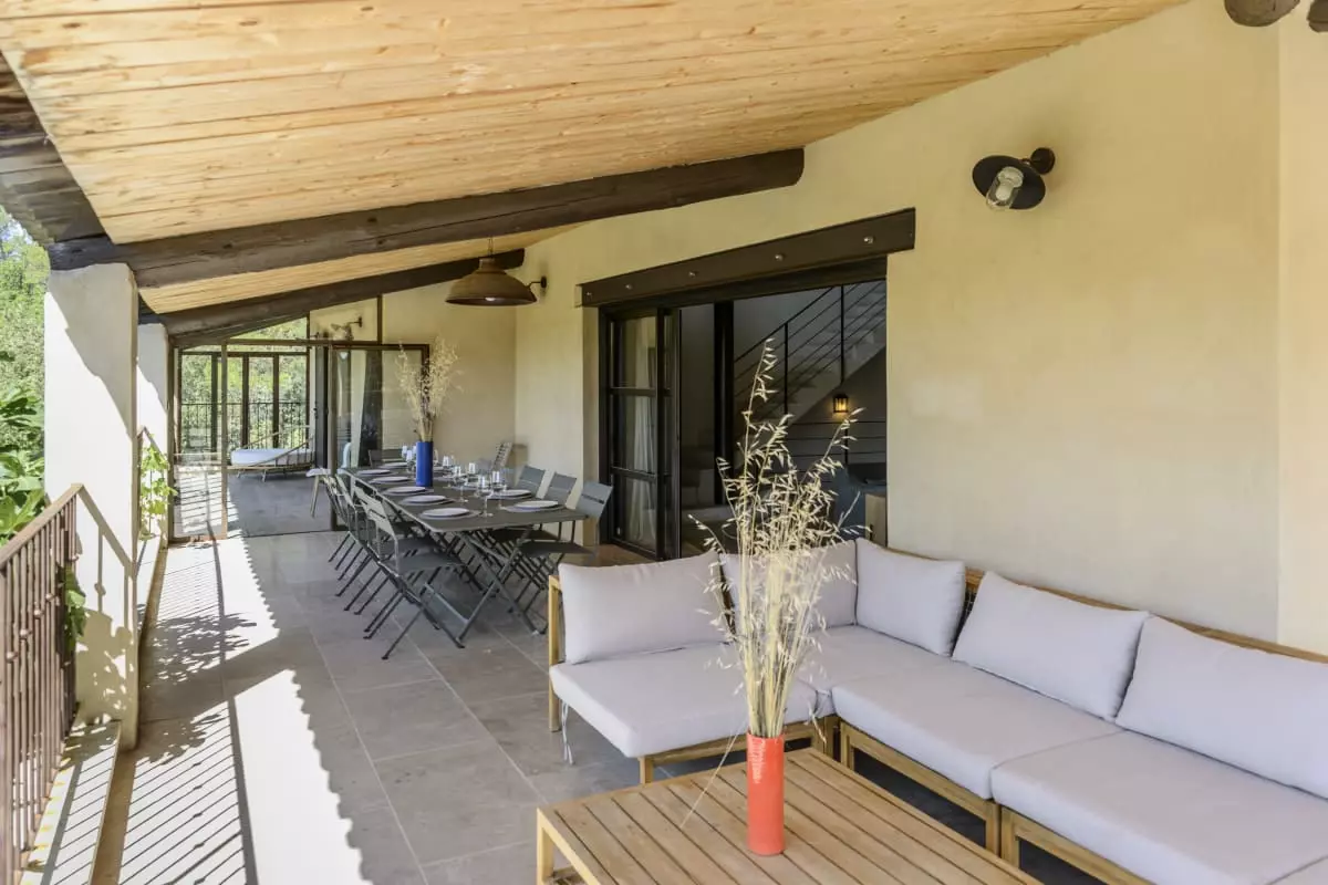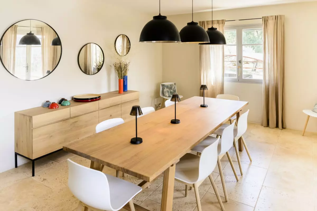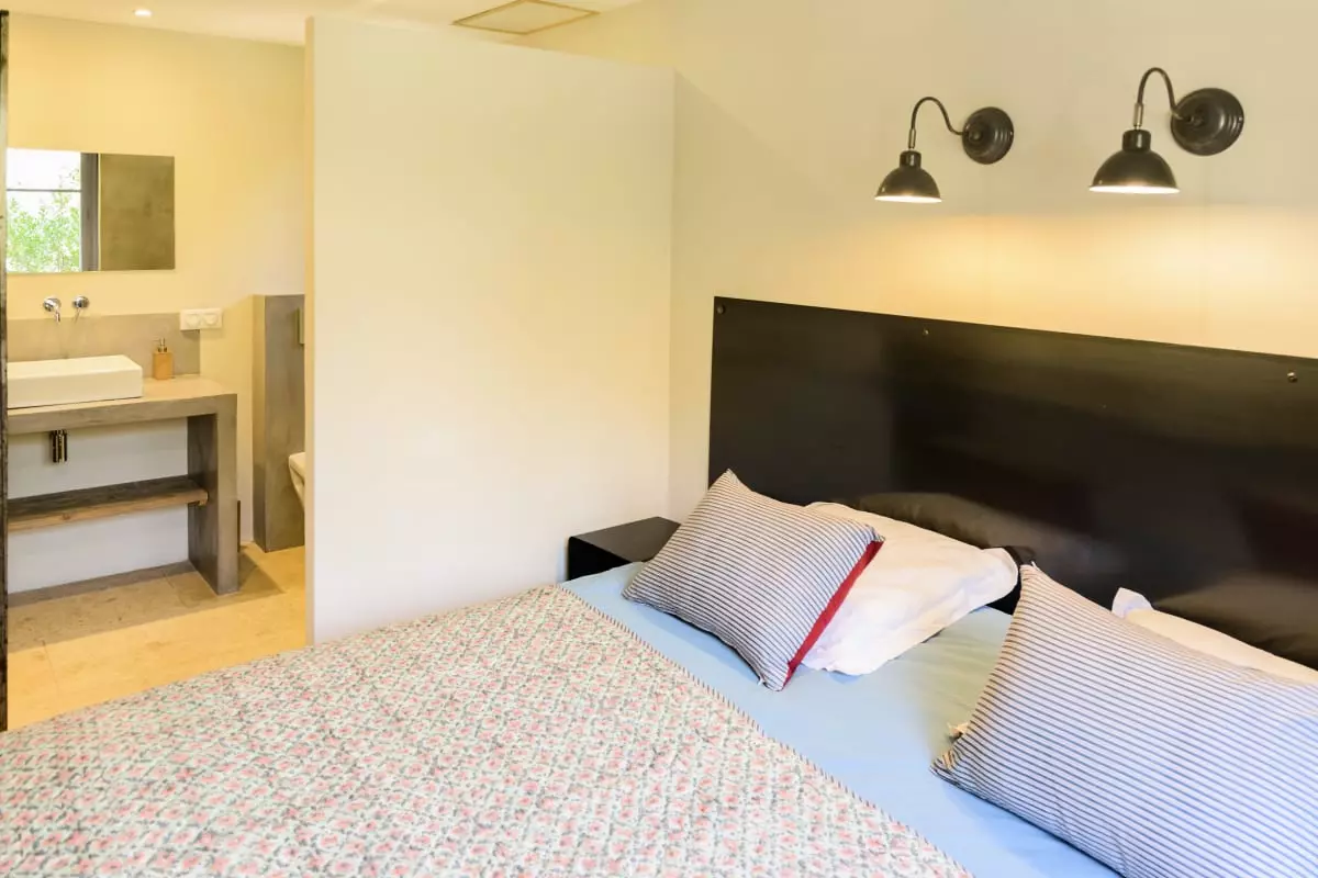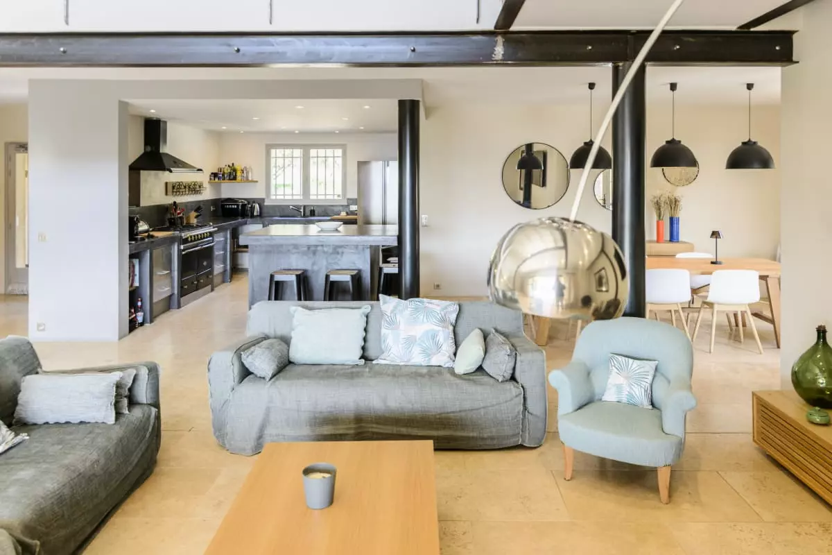 Avec ses 290 m² d’espaces élégants et lumineux, Les Gardis propose 7 chambres climatisées (dont une naturellement fraîche au rez-de-jardin), 7 salles de bain modernes et une vaste pièce à vivre au design contemporain, alliant salon, salle à manger et cuisine ouverte. La hauteur sous plafond et les matériaux de qualité créent une atmosphère à la fois chaleureuse et sophistiquée.