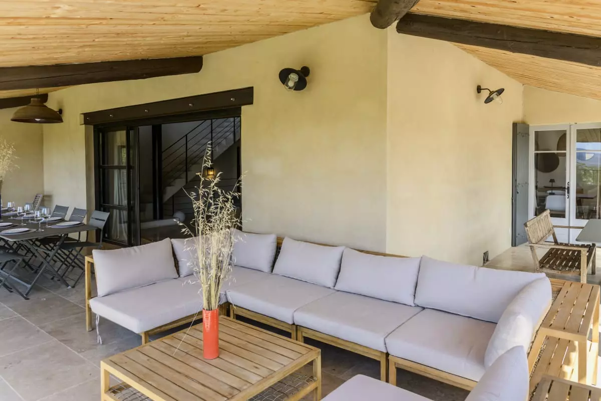 Salon extérieur aménagé pour des repas conviviaux sous les étoiles