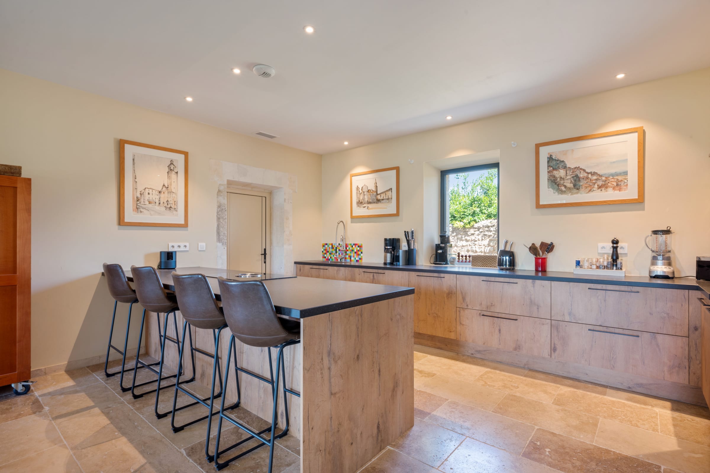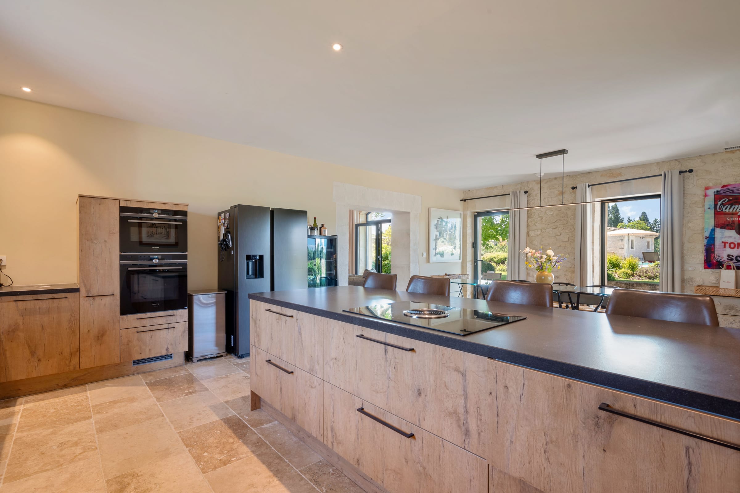 - Cuisine ouverte entièrement équipée avec accès terrasse