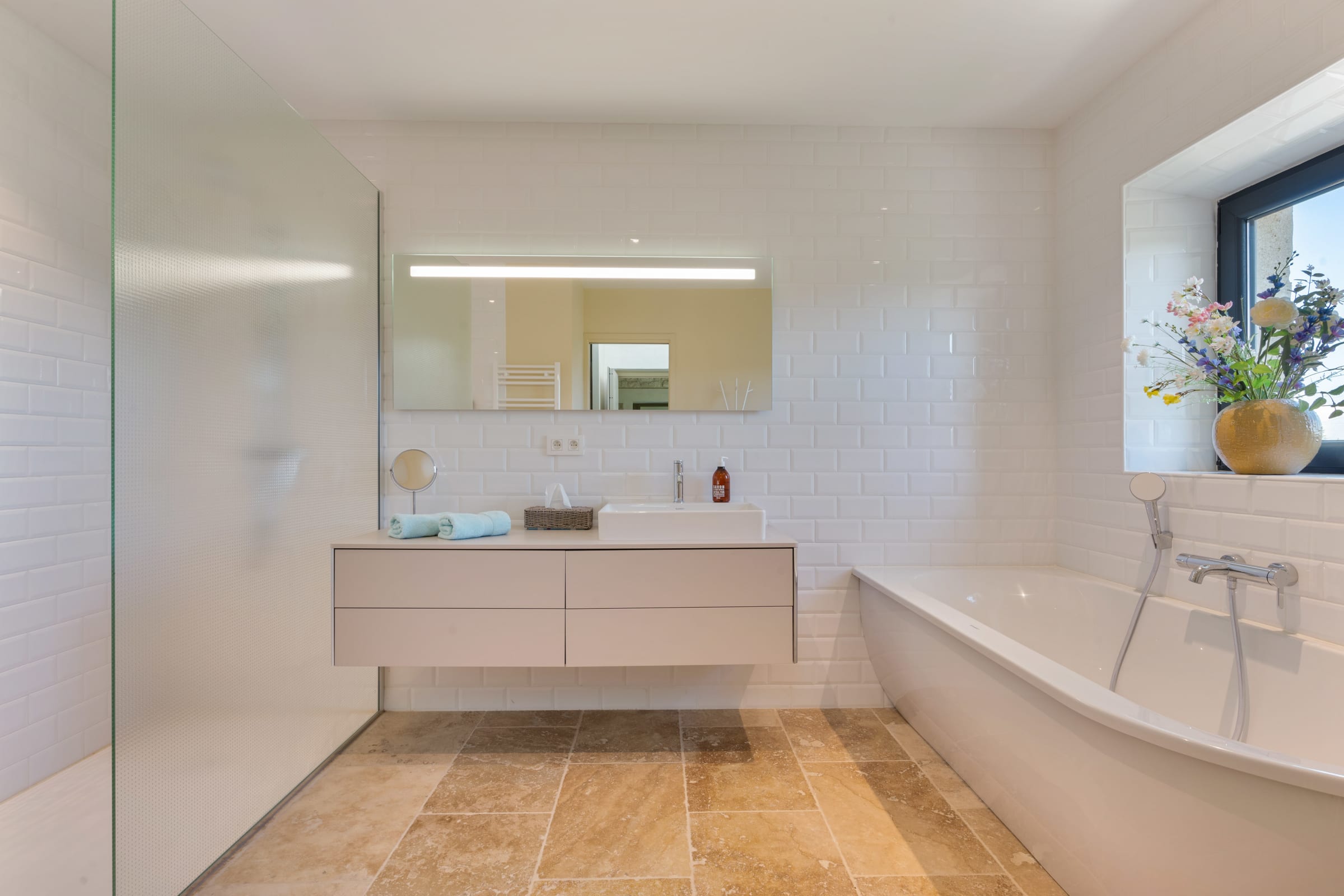 - Chambre 4: lit 180x200cm. Dressing. En suite avec salle de bain complète (baignoire, douche italienne, une vasque, toilettes séparés).