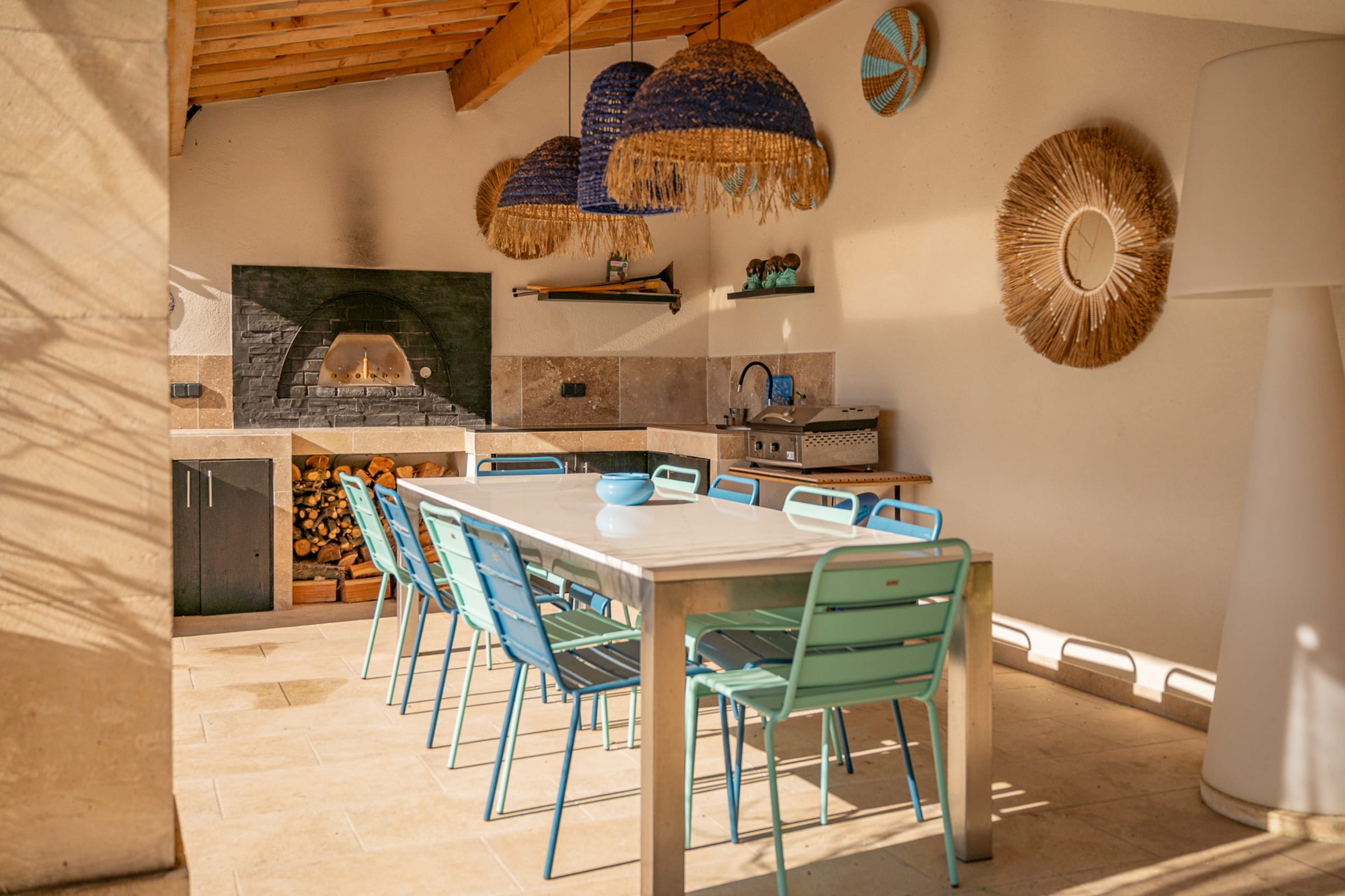 • Cuisine d'été tout équipée : grande table pour déjeuner à l'ombre, plancha, four à pizza et jardin d'herbes aromatiques