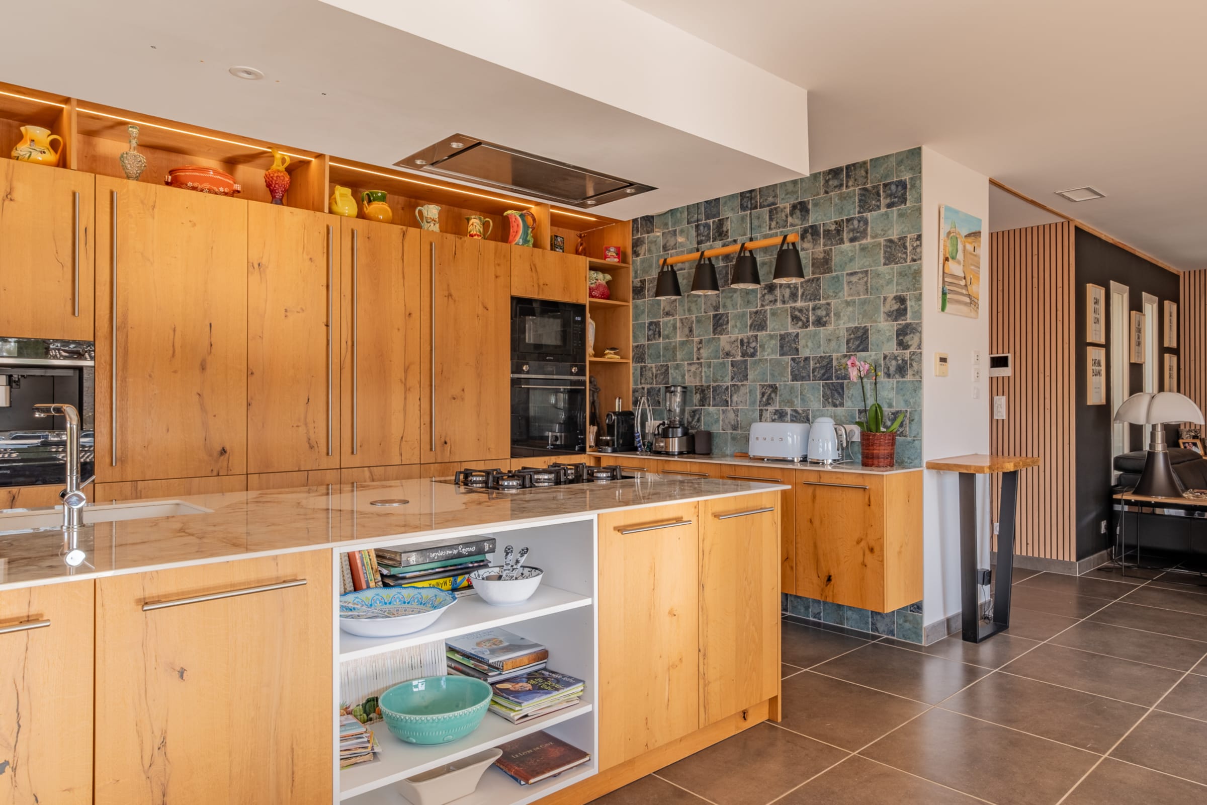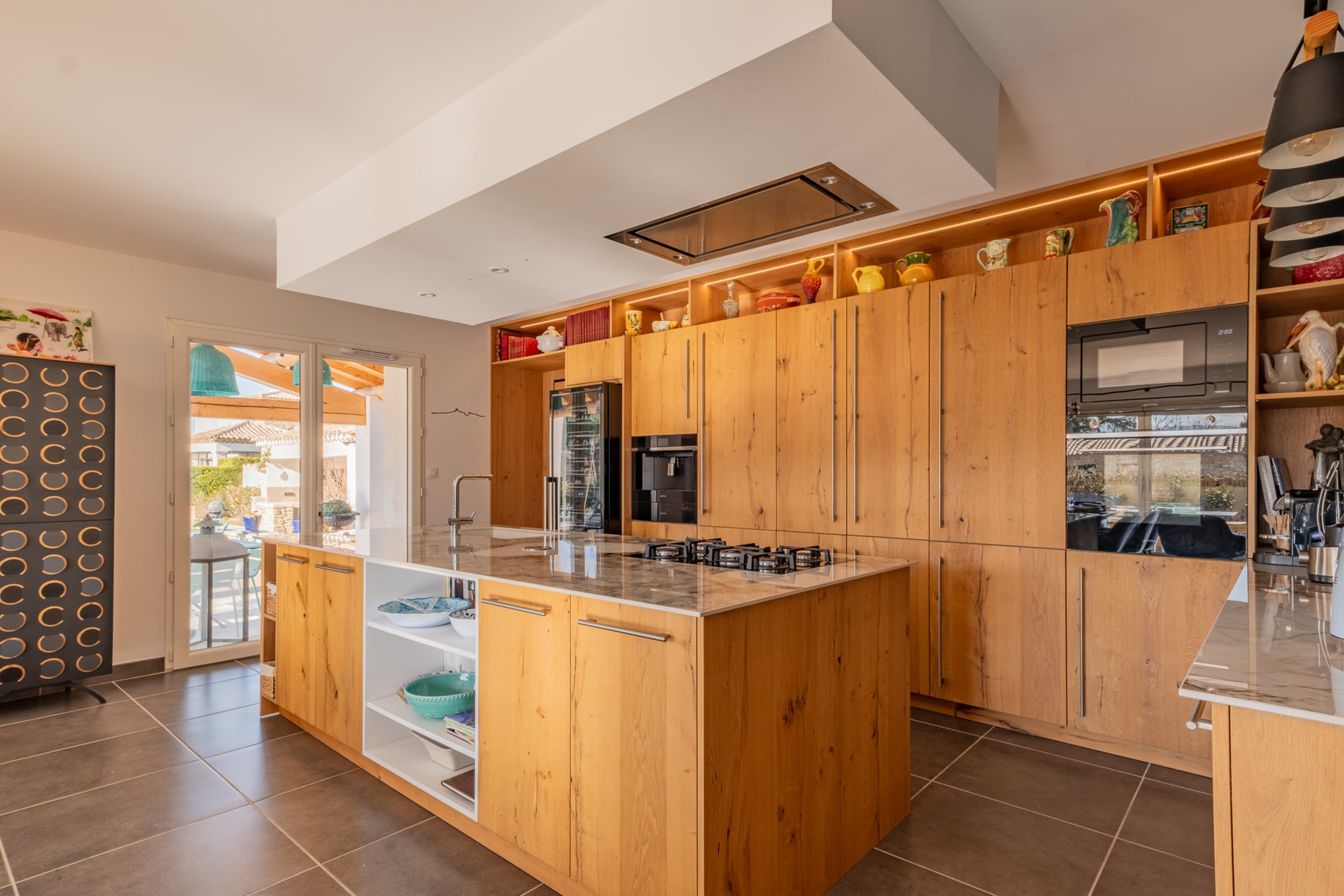 • Cuisine parfaitement équipée ouverte sur une salle à manger baignée de lumière avec espace bar et accès direct à la terrasse