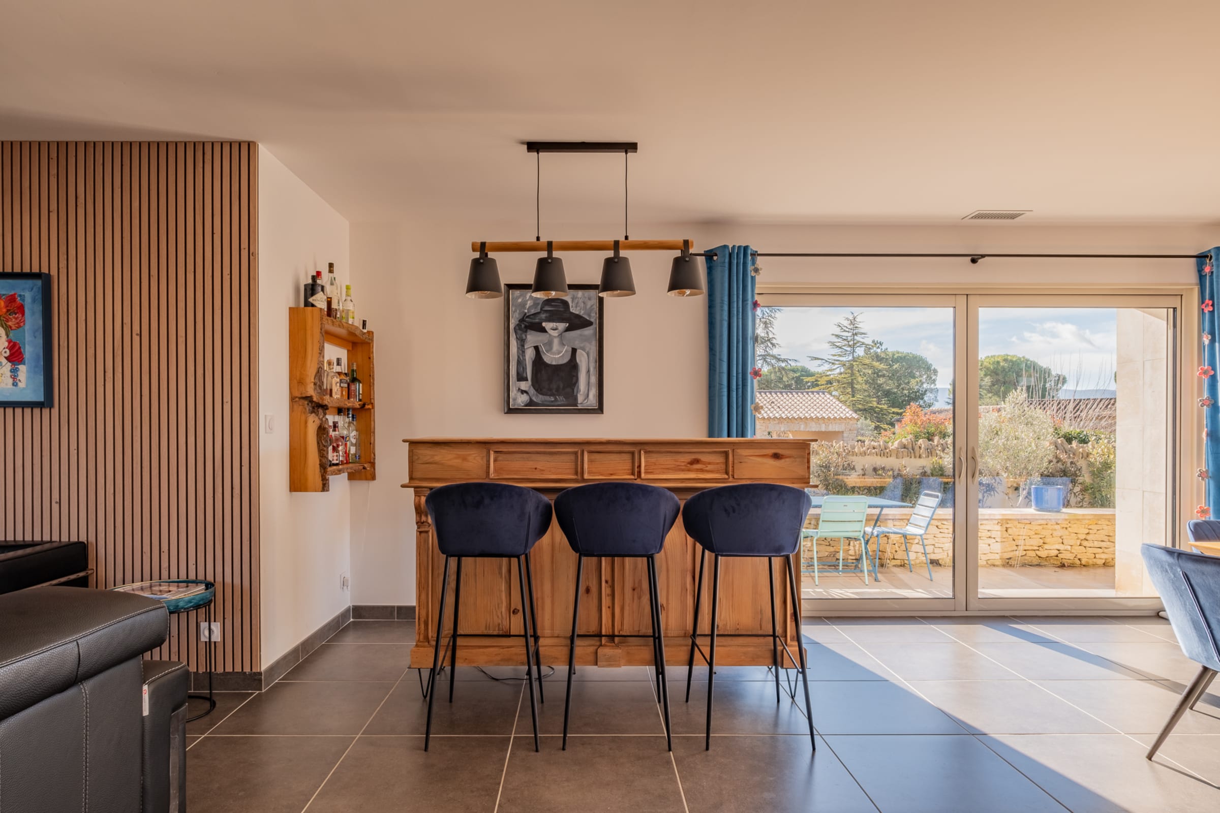Charmante maison provençale de plain-pied, entièrement rénovée et climatisée dans toutes les pièces pour votre confort optimal. Située dans un environnement résidentiel calme à quelques kilomètres du village perché de Gordes, elle vous offre la tranquillité recherchée, loin de l'effervescence du centre historique, tout en restant proche des sites exceptionnels de la région.