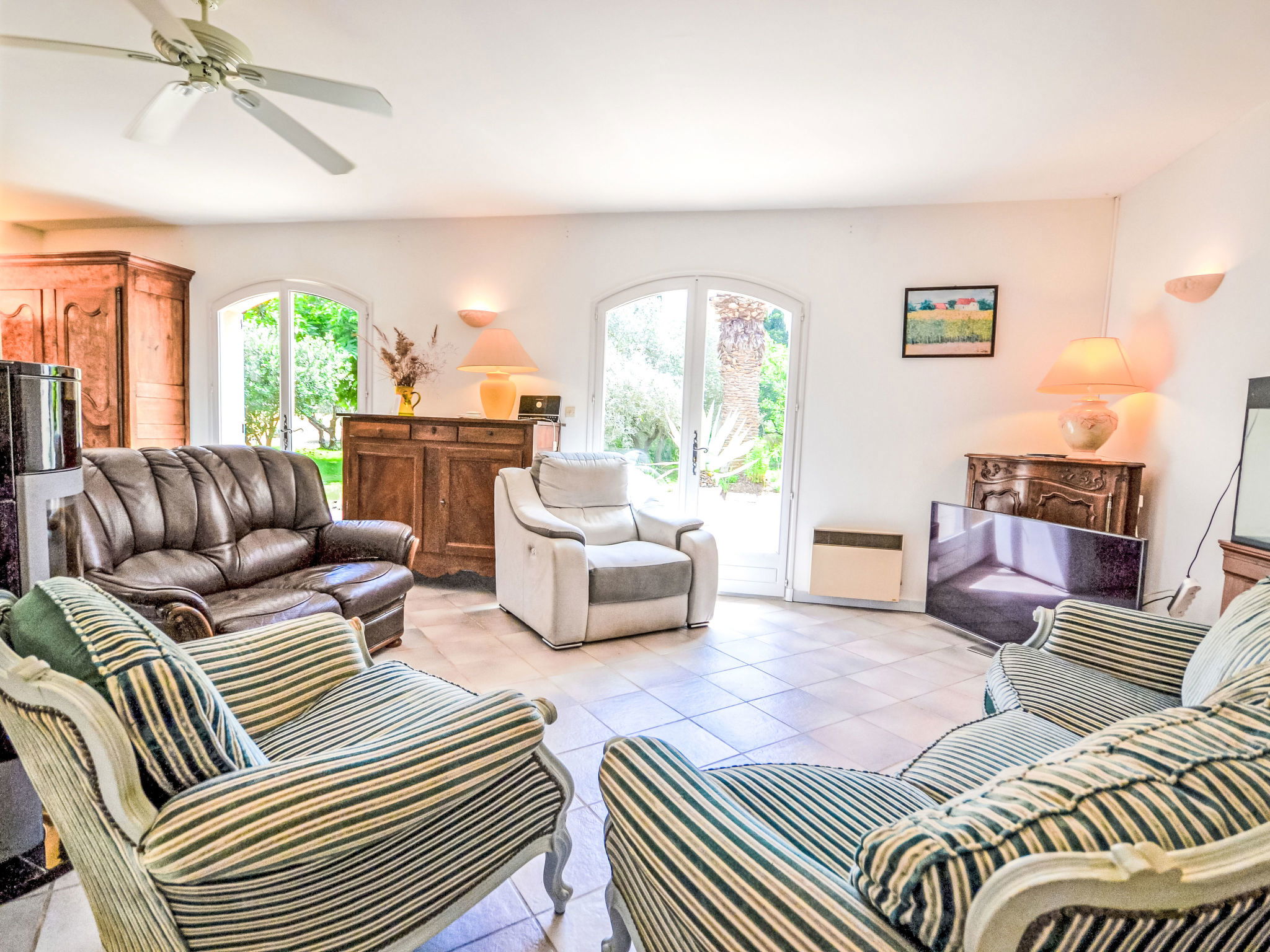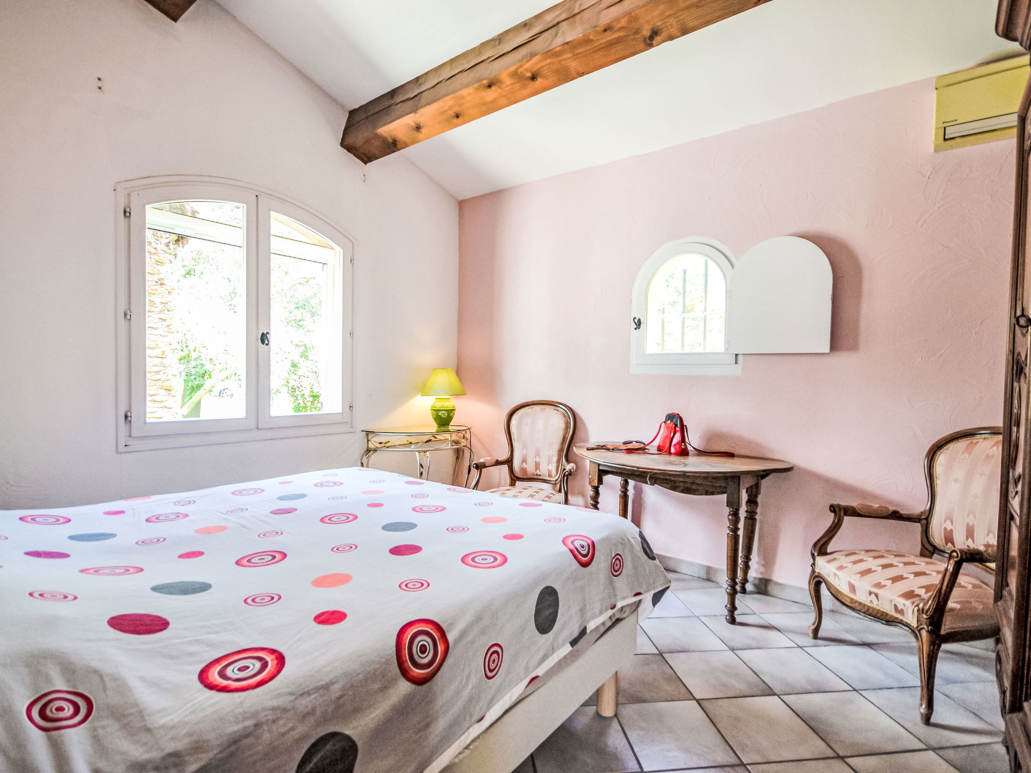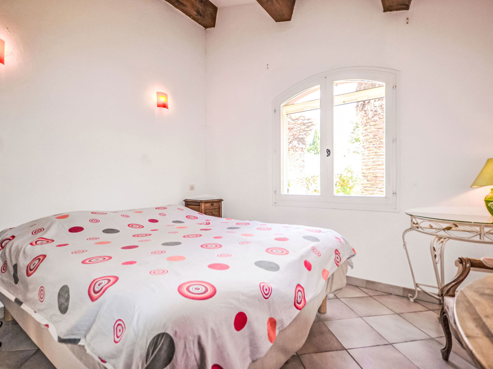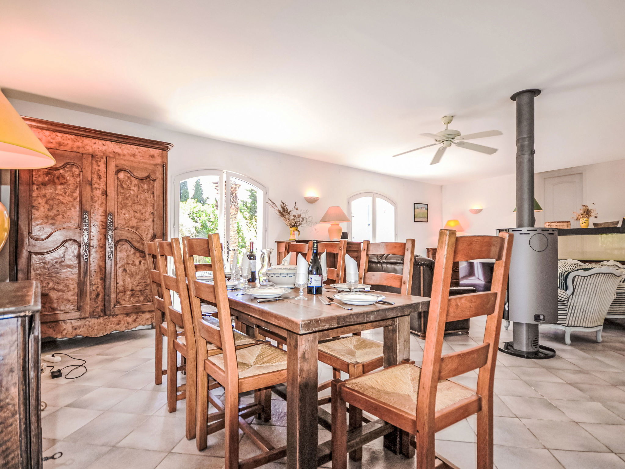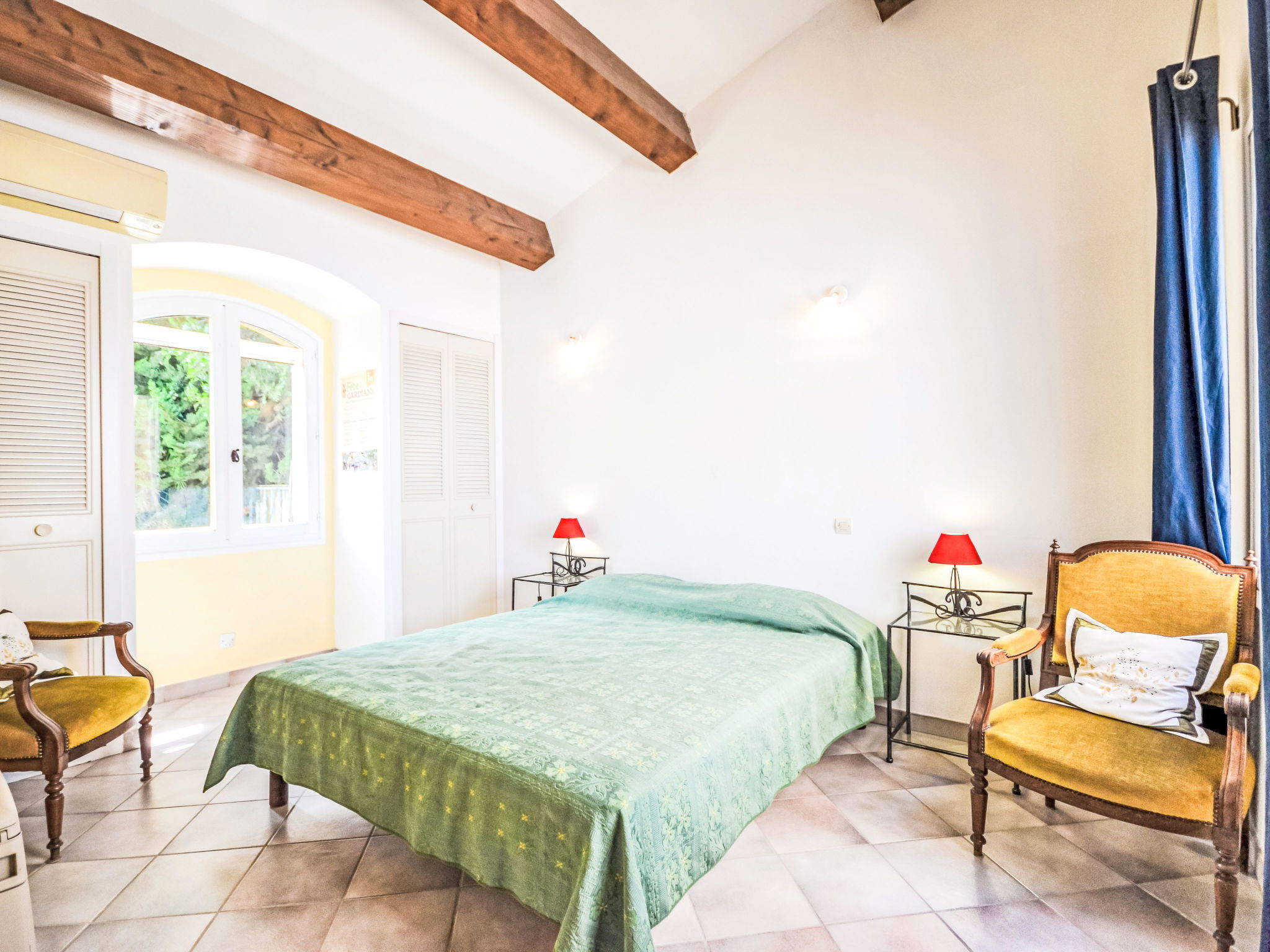 "Mas des Lavandes", maison 5 pièces 160 m2. Aménagement confortable et agréable: séjour/salle à manger 40 m2 avec poêle suédois. Sortie sur la terrasse. 1 chambre avec 1 grand-lit (140 cm, longueur 190 cm), douche. 1 chambre avec 1 grand-lit (160 cm, longueur 200 cm). 1 chambre avec 1 grand-lit (140 cm, longueur 190 cm). 1 chambre avec 2 lits (90 cm, longueur 200 cm). Cuisine ouverte (four, lave-vaisselle, 4 feux, grille-pain, bouilloire électrique, micro-ondes, cafetière électrique). Bain/douche, douche, 2 WC séparés. Chauffage électrique, air-conditionné. Terrasse 20 m2 partiellement couverte. Meubles de terrasse, barbecue, chaises longues (8). A disposition: lave-linge, chaise haute pour enfant, lit bébé jusqu'à 2 ans. Internet (Connexion WIFI, gratuit). Veuillez noter: détecteur de fumée. Annonce d'un particulier (art 155, IV du CGI).