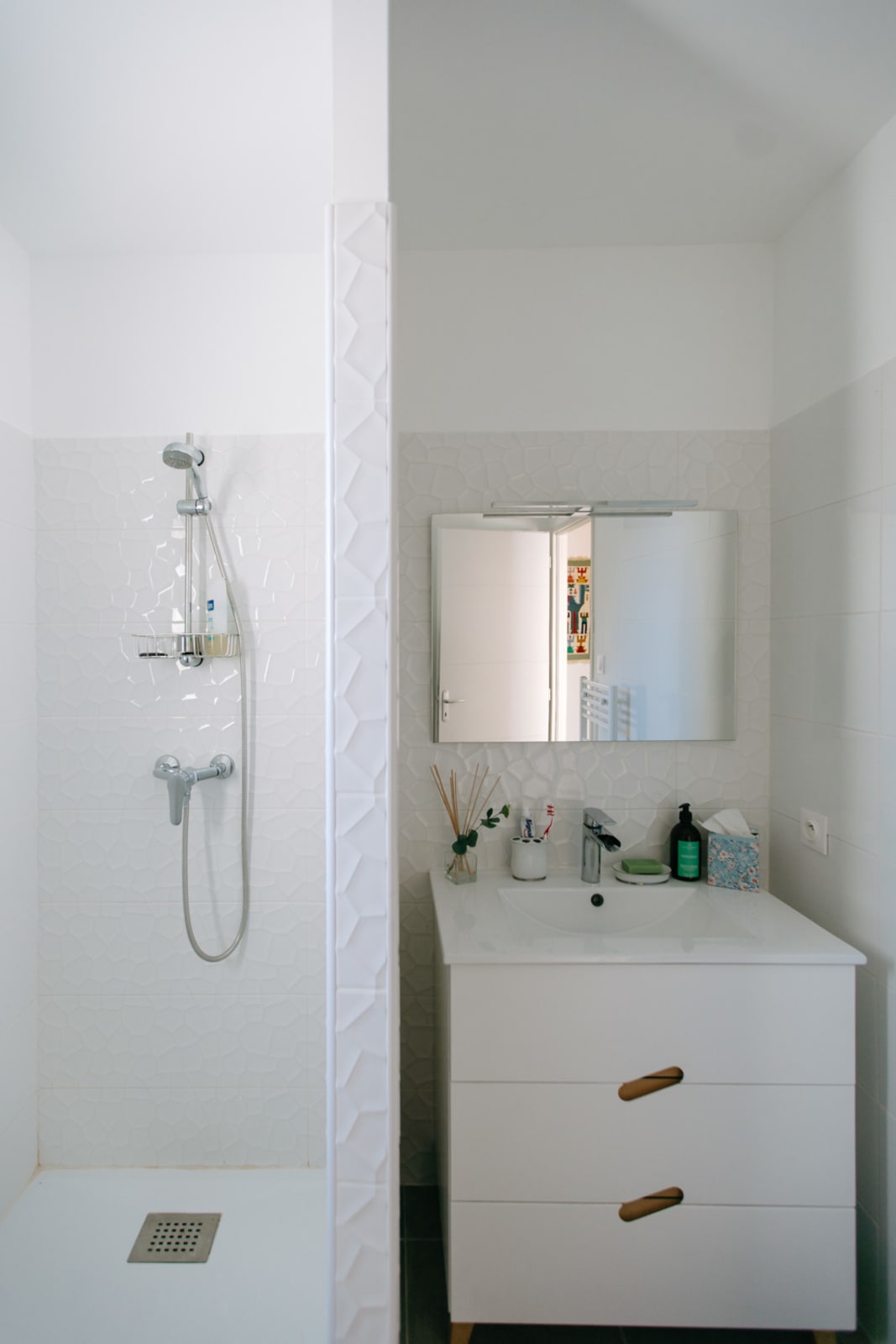 La maison dispose de trois chambres doubles lumineuses, aménagées avec soin et dotées de rangements astucieux pour un confort optimal. La suite parentale, avec sa salle d’eau attenante, offre intimité et sérénité. Une seconde salle d’eau complète l’espace nuit. Il y a un WC dans la maison.