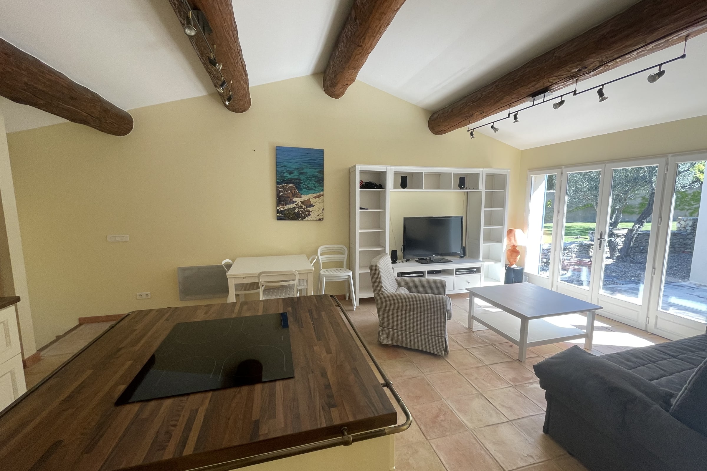 superbe dépendance avec 2 chambres ( 4 lits simples ou 2 lits doubles), salon, cuisine, salle de bain