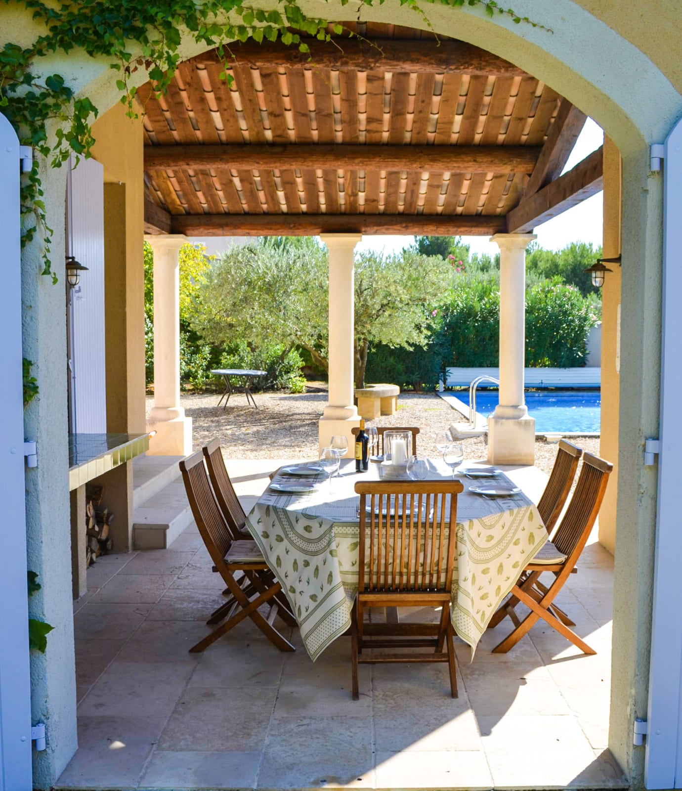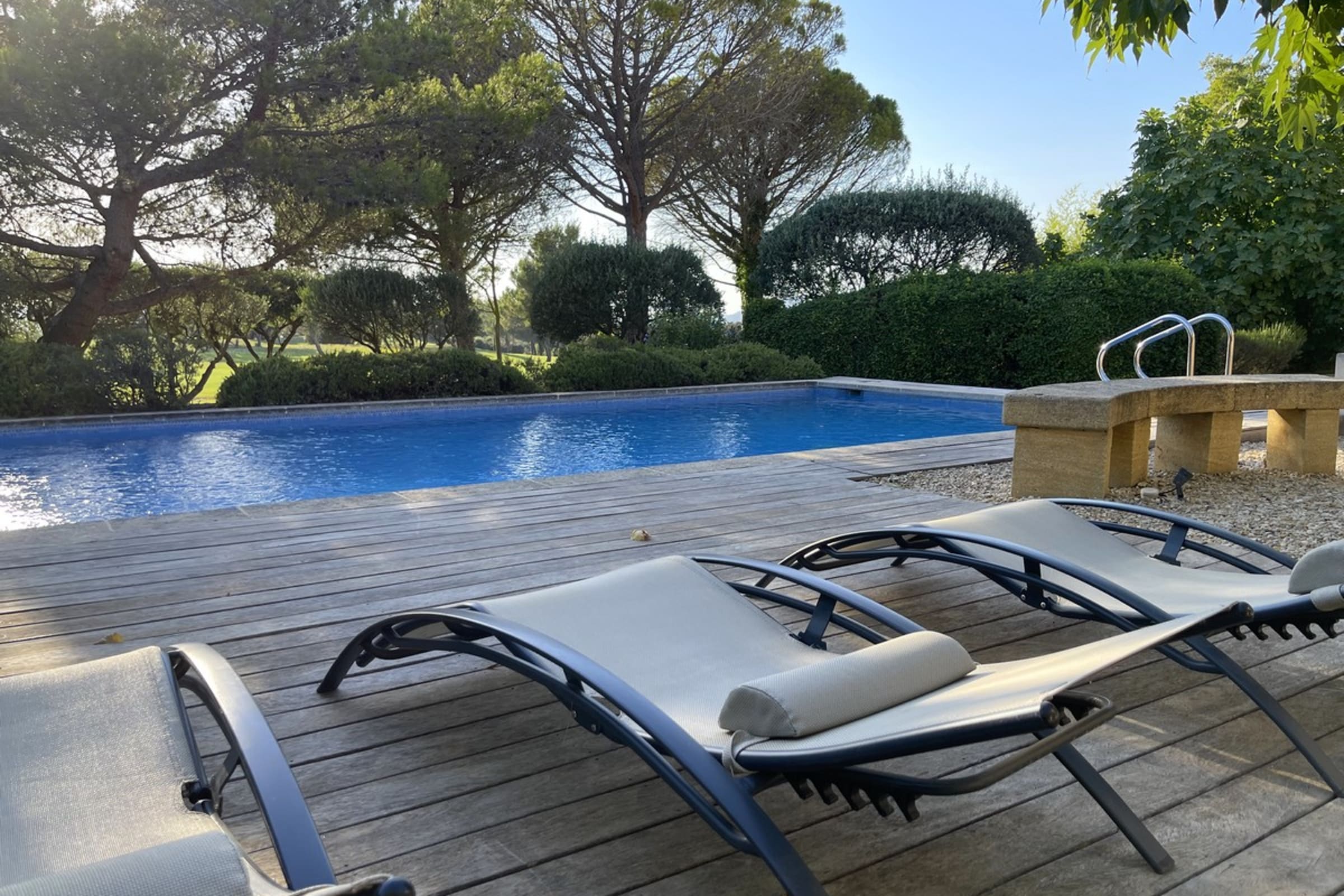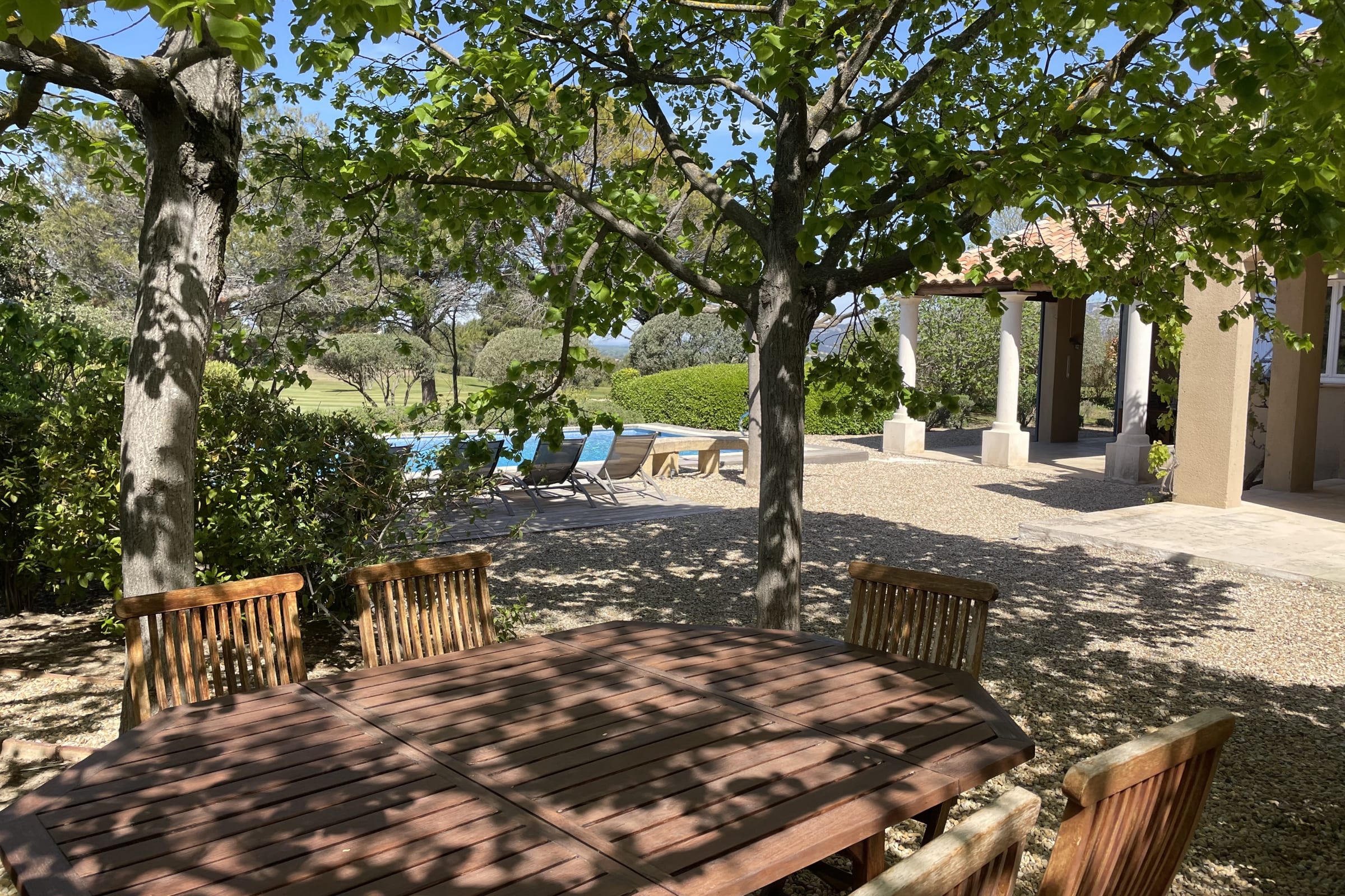 **Côté extérieur :** A l'extérieur, tout de la Provence avec terrain de boules, piscine 10*5, cuisine d'été avec sa terrasse couverte et des espaces privatifs aménagés.
