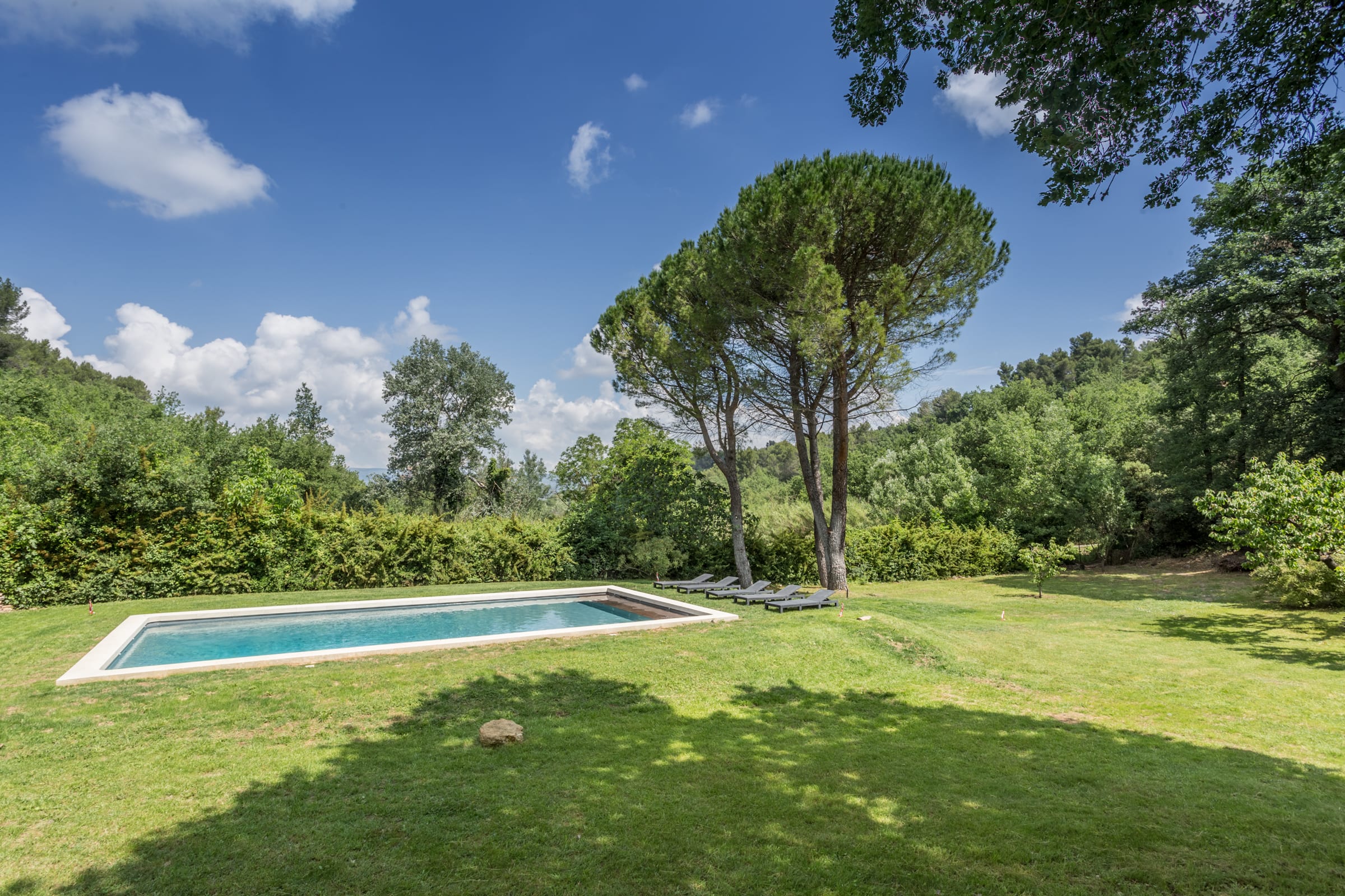 La piscine, dans un cadre enchanteur, complète cette ambiance de vacances idylliques.