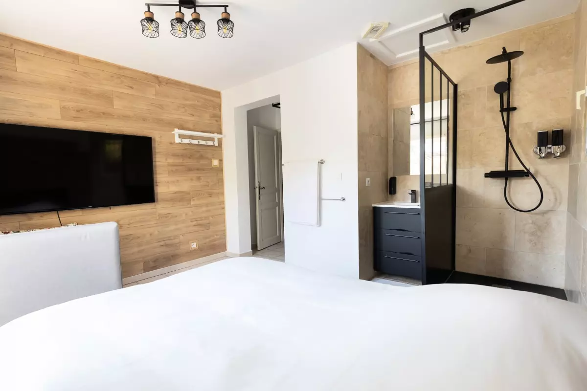 À l'extérieur, vous découvrirez un grand terrain arboré de 1400 m², une magnifique piscine avec sa douche extérieure chauffée, et tout le nécessaire pour se détendre et profiter de la douceur de vivre provençale. Pour la sécurité des plus petits, la piscine est équipée d'une barrière.